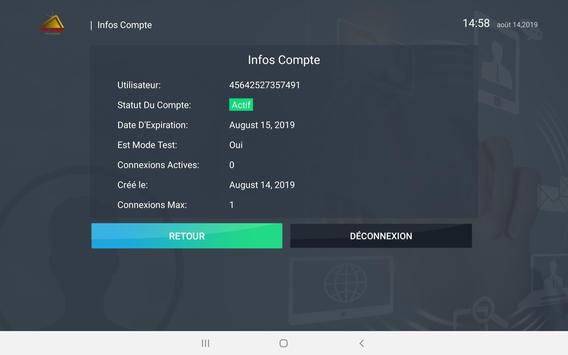 - Informations de votre abonnement : Statut de l’abonnement, date d’expiration ..etc