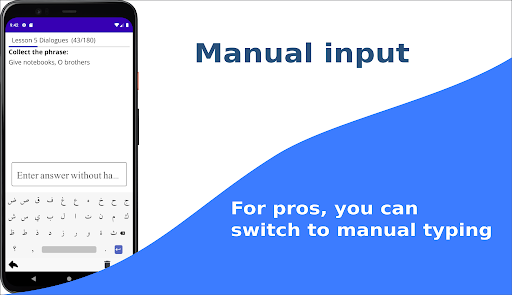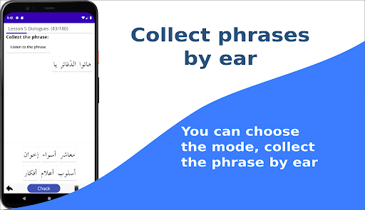 You can put to collect the phrase by ear. First, the announcer voices the phrase (word) in Arabic, and only then you must collect it by ear.