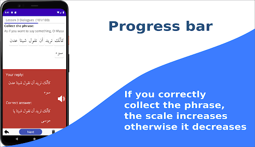 The essence of the whole application is that you need to collect phrases in Arabic. With us you will learn Arabic in a short time step by step.