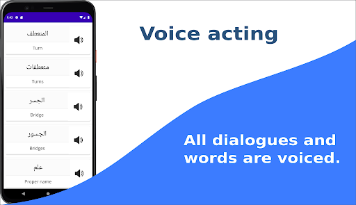 Words tab. By going to it, first open the list of new words in Arabic. To do this, click on the button in the form of books (bottom right). All words in Arabic have voice acting.