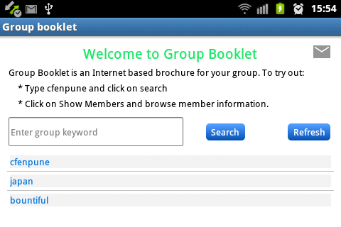 Group Booklet is an Internet based brochure for a group. Group Booklet is useful when you need to showcase member's information to an outsider, say, a potential customer. You do not need to make that person a part of your group. All member information you provide here is for the public to see.