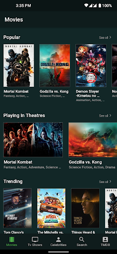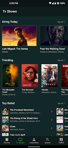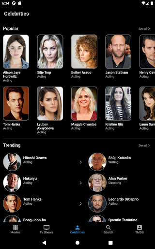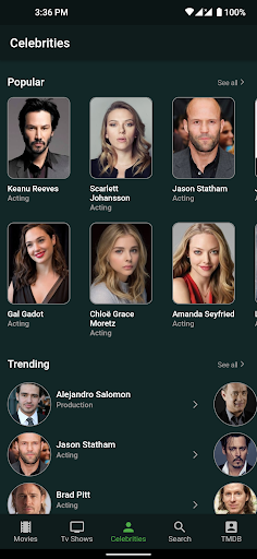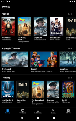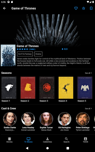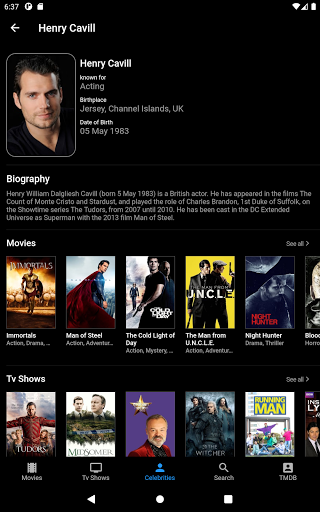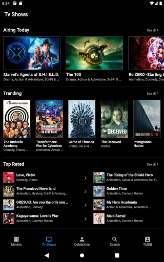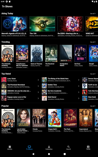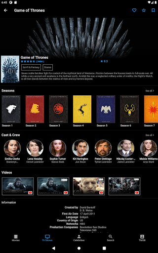This app shows movies, tv shows, and celebrities info from the API provided by https://www.themoviedb.org.