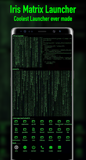 Iris Matrix Launcher is a cool, customizable, and hacker-styled home screen replacement. Iris Matrix Launcher brings hacker-styled features to perfect your home screens, while in the same time remains user-friendly. If you are tired of boring launchers, Iris Matrix Launcher is your best choice!