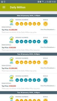 By using the application Irish Lottery Results you can view real-time results of draws for Lotto, Euromillions, Dialy Million, TellyBingo, Lotto 5-4-3-2-1 and Millionaire Raffle.