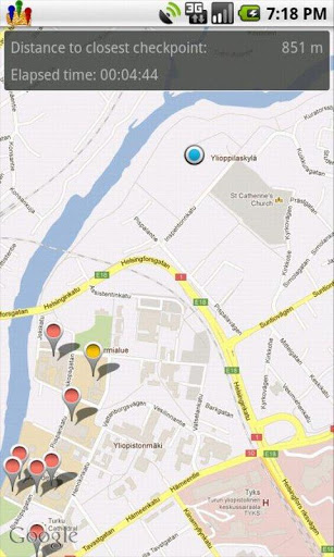 An outdoor adventuring application. Create an adventure by placing checkpoints on a map. This can be done on our website: