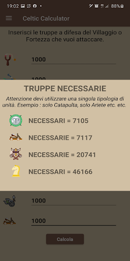 Don't waste time on unnecessary calculations, or risk losing the battle !! Use Celtic Calculator to find out how many troops to deploy and easily dominate on the field.
