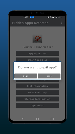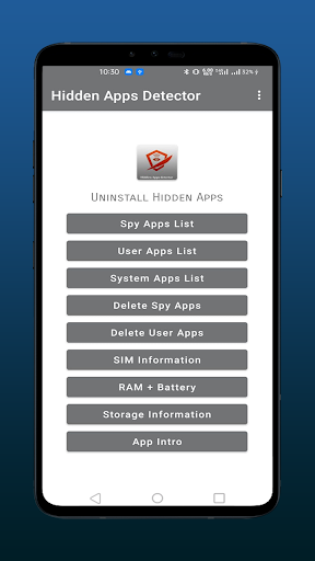 Hidden app detector for android will detect hidden apps install in your mobile phone. easy to use just install this hidden spy application detector for android and start detecting hidden application or start detecting hidden software app. this apps works as hidden software application detector. Find Hidden Apps, Spy Apps allows you to find hidden or malicious applications hidden spyware removal for android malware removal for android games with or without an icon in the application list or in the android phone. malicious binary system that does not show its icon. It is recommended to not only remove spyware, malware but also delete the apps you dont use to boost Your device performance