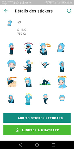 The new Islamic WAStickerApps will be updated with new Arabic stickers to share with your friends: funny stickers, Muslimah stickers, Salam stickers and other Arabic WAStickerApps stickers.