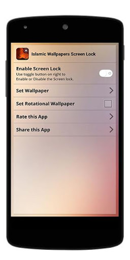 After downloading this app from Google play store, tap on its icon and get 3 main features. By enabling the screen, you may allow this app to set the wallpapers of your mobile lock screen. Then choose one of the 10 Islamic wallpapers. In the settings, you may enable the wallpapers to set on the lock screen and can also set the wallpapers rotationally.