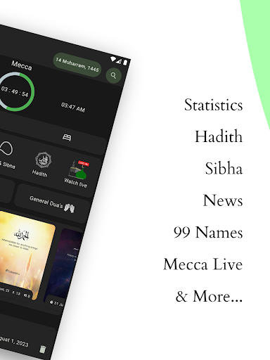 -Use the digital Sibha feature to keep count while reciting Dhikr.