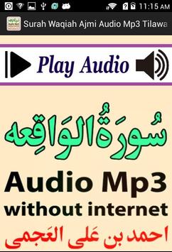 This is the best App of Surah Waqiah Mp3 Audio Album in Voice of Ahmed Ibn Bin Ali Al Ajmi. This app is perfectly running in the android mobile phones. No need of internet to play audio in this app. This App is free and very easy to use.