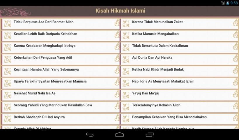 The story of Islamic Wisdom is an application that contains a collection of stories full of wisdom from stories like the story of an exemplary example of Islamic prophets, companions of the Prophet and the believers.