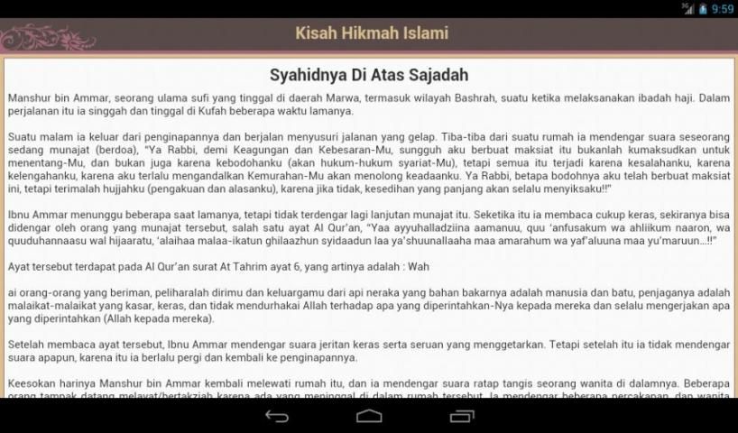 In the application there is a 80 + story Islamic Wisdom. The story is an example of Islam we collect from the writings contained in the Internet, hoping to be a material reflection to increase our faith and love of Allah and the Prophet Muhammad.