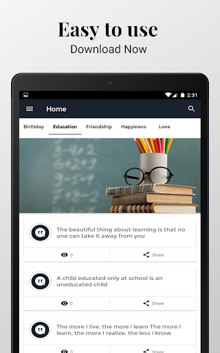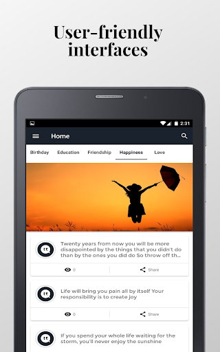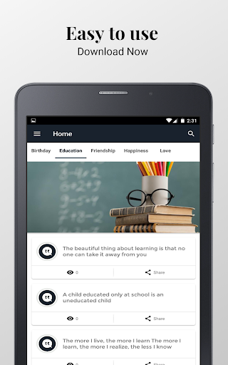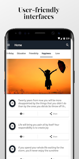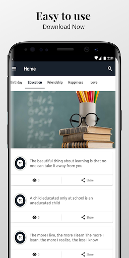This awesome App contains thousands of hand-selected all types of Any Quotes from famous people lives that help you with your day success.
