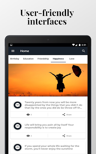 Start your day with an inspirational and motivational from thousands collection of amazing and unique quotes. You can add to your favorite lists and share any quotes.