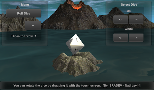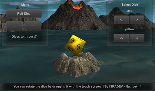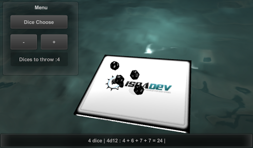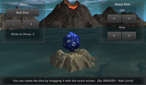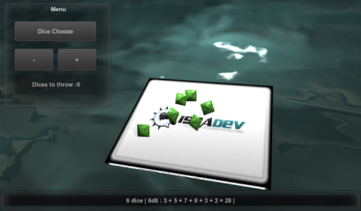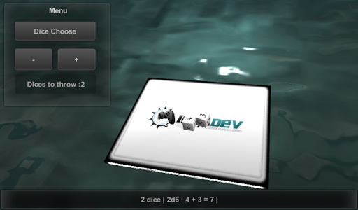 D4/D6/D8/D10/D12/D20 Dices and 6 different colors , check your desired amount of dices to throw on a 3D surface and even get the results of the total summary of all thrown dices on floating board with amazing sea background and sound ..