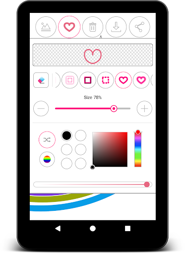 - brush types doodle, line, circle, oval, square, heart, spot, droplet, smile