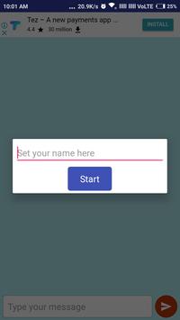 This is Completely free No registration or Sign-in required. Just set name and start chatting.