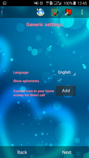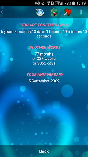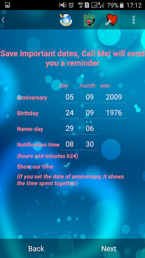 You can also associate a photo, send him / her text messages, Whatsapp, Messenger and Viber messages, or go directly to the facebook page of your love, have also the option to set a reminder to remember when to call your love, receive a notification for important dates, shows you how long you have been engaged with your lover and personalize app icon.