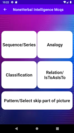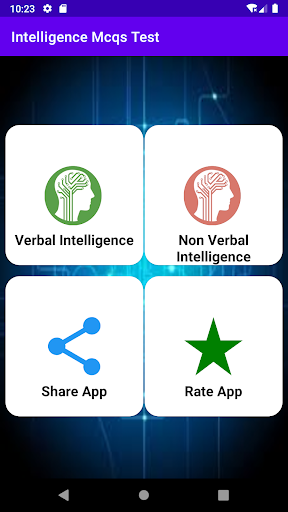 Intelligence Mcqs Test is an app in which Verbal and Nonverbal Important Solved Intelligence mcqs with category wise Contain.