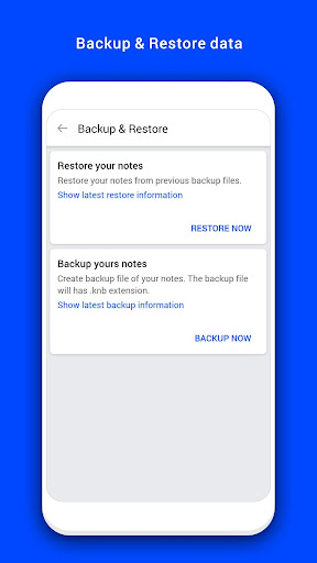 - Backup, restore and sync your notes via Google Drive or backup restore data directly from file in phone