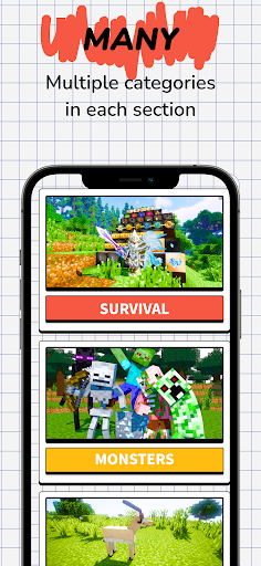 In our application, we were able to collect many sections for a wide variety of add-ons for your favorite minecraft game, in our application you can find various categories and sub-categories for the minecraft game, we have collected the best collections, maps, mods, skins, skin packs, sids, textures, and much more for the minecraft game