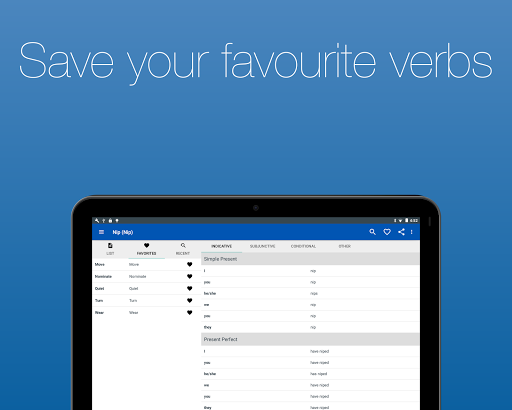 View almost 2000 English verbs in 20 tenses. With simple navigation and built in search, you can find the verb you need in seconds.