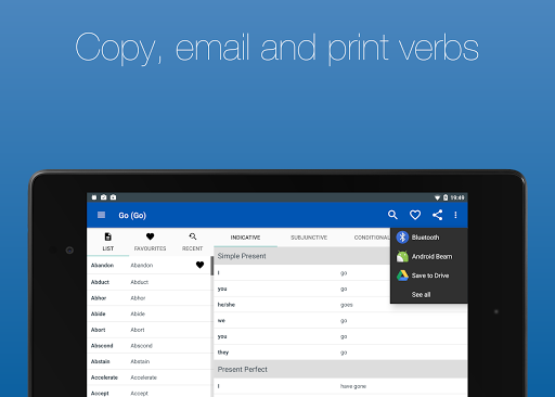 Includes the ability to copy, email and SMS verb conjugations.
