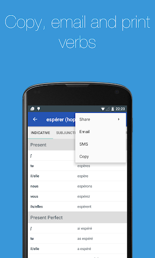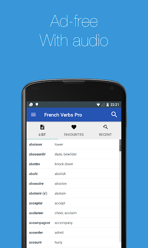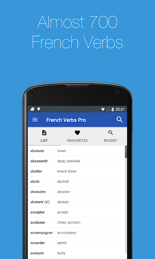 View almost 700 French verbs in 17 tenses. With simple navigation and built in search, you can find the verb you need in seconds.