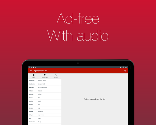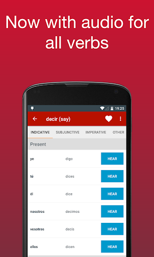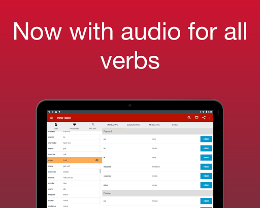 Now with audio!! Not sure how to pronounce a verb? You can now hear how every verb is pronounced. Just tap on the button next to the conjugation. Verbs with audio have a speaker symbol next to them. Note: this functionality requires an Internet connection.