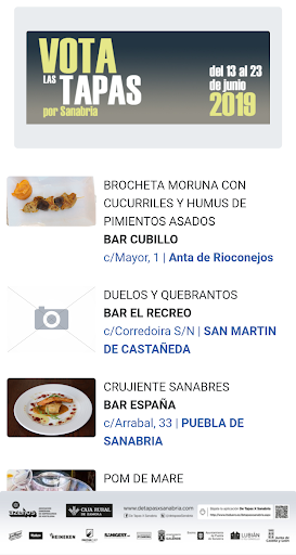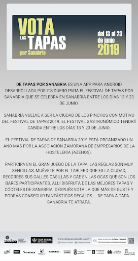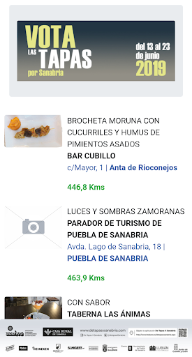 Aplicación que permite consultar los establecimientos y tapas participantes en esta edición de "De Tapas por Sanabria". Podrás consultar la distancia a la cual te encuentras de cada bar o restaurante, e incluso votar por cuále es tu tapa preferida.