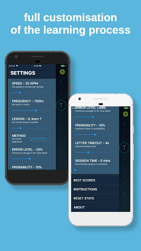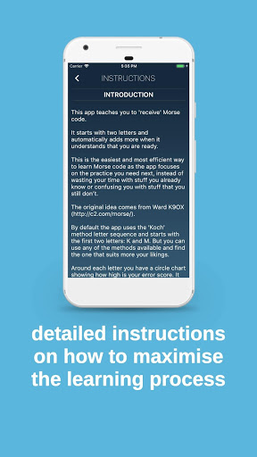 This is the easiest and most efficient way to learn Morse code as the app focuses on the practice you need next, instead of wasting your time with stuff you already know or confusing you with stuff that you still don’t.