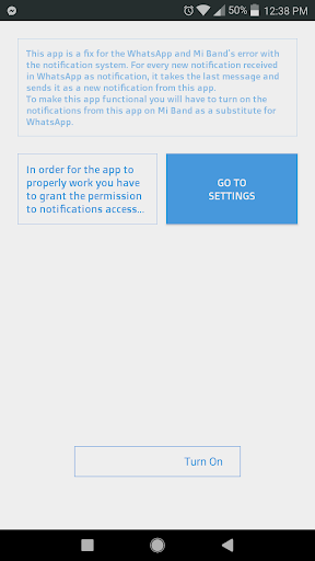 This app makes the WhatsApp notifications bareable for the Mi Fit Band 2 and 3, without removing the default application or any intrusive method, it acts like a proxy for notifications.