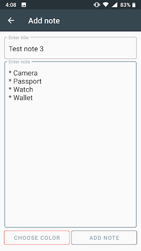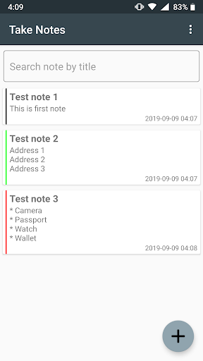 Simple note taking app * Create simple notes * Create To-Do list * Cross completed task in To-Do * Categorize with colors * View note added time * Delete note by swipe All notes are saved on your local storage.