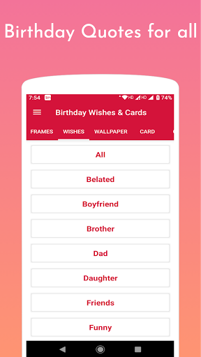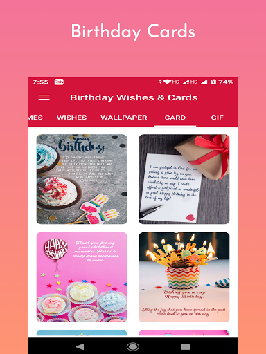 Happy Birthday Wishes & Cards app have exclusively collection of Cards, Photo Frames, GIF, Wishes, Greetings and Wallpaper for Birthday's. Send special happy birthday wishes and greetings to your family, friends, girlfriend, boyfriend, husband, wife or anyone else. You can easily share, copy and download any greetings easily.