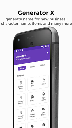 Generator X is an app to help you make name for new business, character name, role playing game item name and many more.