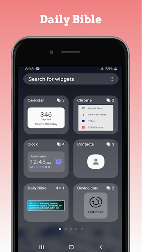 This is a widget app so please set it on the home page after downloading. The widget will show the new Bible everyday. If the widget is clicked it will show a whole chapter. Please feel free to send me any comments.