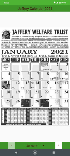 Jaffery Calendar 2021 Android app contains a soft copy of the Jaffery Calendar 2021.