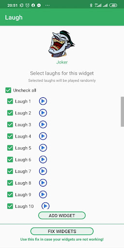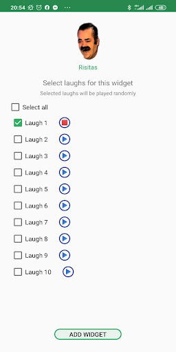 You can choose one or more sounds to your widgets and play laughs at random.