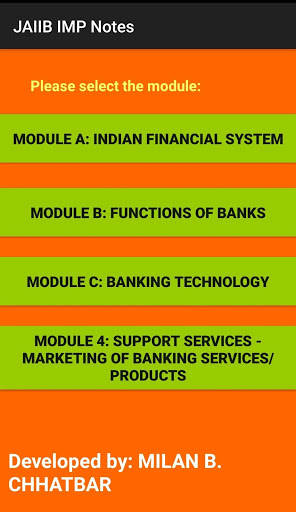 The app is developed by Milan Chhatbar who has passed the JAIIB and as well as CAIIB exam and also passed through the experience and subject area of these subjects.