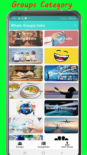 With Group Links For Whatsapp - New Whats Group Links app you get to choose from up to 1000 Whatsapp group links. You can select any group you like and join it with just one click.