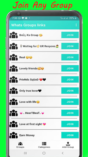 The process of joining an active group link is very simple. Once you have downloaded our Group Links For Whatsapp - New Whats Group Links app, open it. Click on the "Start" button and you will see the various categories we offer. Select any category you want. Then some of the best Whatsapp group links of that particular category will appear in front of you. Click on any group links for Whatsapp you like. Then hit the "Join Group" button to join the group instantly. You free to join as many social groups as you wish.