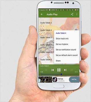 Audio suara tokeknya bisa dijadikan sebagai nada dering, nada panggilan, nada pesan, nada alarm dll.