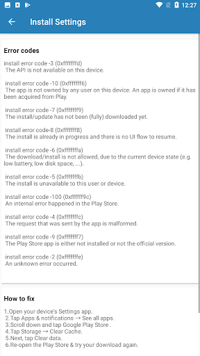 3.Show you Play Store install error code and reason.