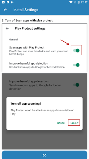 3.Turn off Play Protect scanning option.