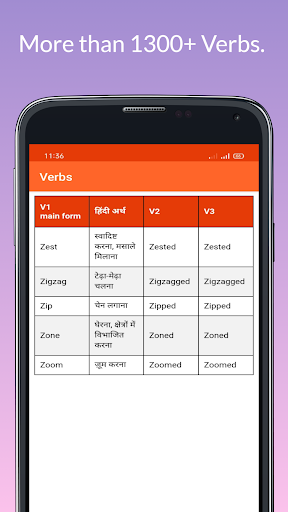 Launching verb app version 2 which includes more than 1300 verbs forms (V1, V2, & V3) list with Hindi meaning.