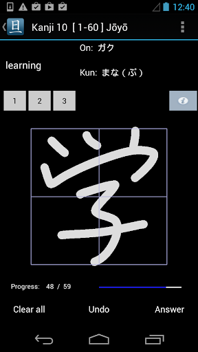 * Two puzzle and two writing practice drills including stroke order animation.