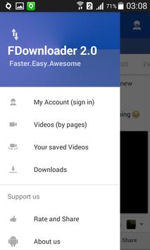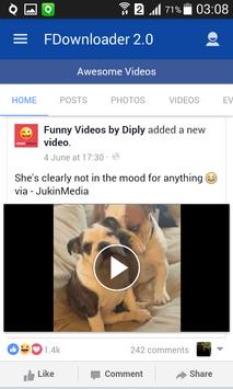 allows you to browse your Facebook videos posted by you , videos posted by friend , videos posted by pages you liked and download it easy