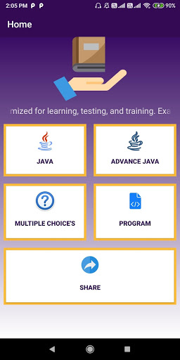 This app helps you refer to a greate to a collection java programs and theory on the go and helps you improve logical thinking of various problems related to Programming. Its an application to give source code and output try yourself for various java Programs as well as theory.