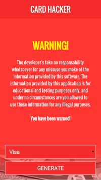 Each card is generated along with its own CVV and Expiration Date. Please use this tool wisely. By installing you acknowledge that you will not use this application for any illegal purposes.